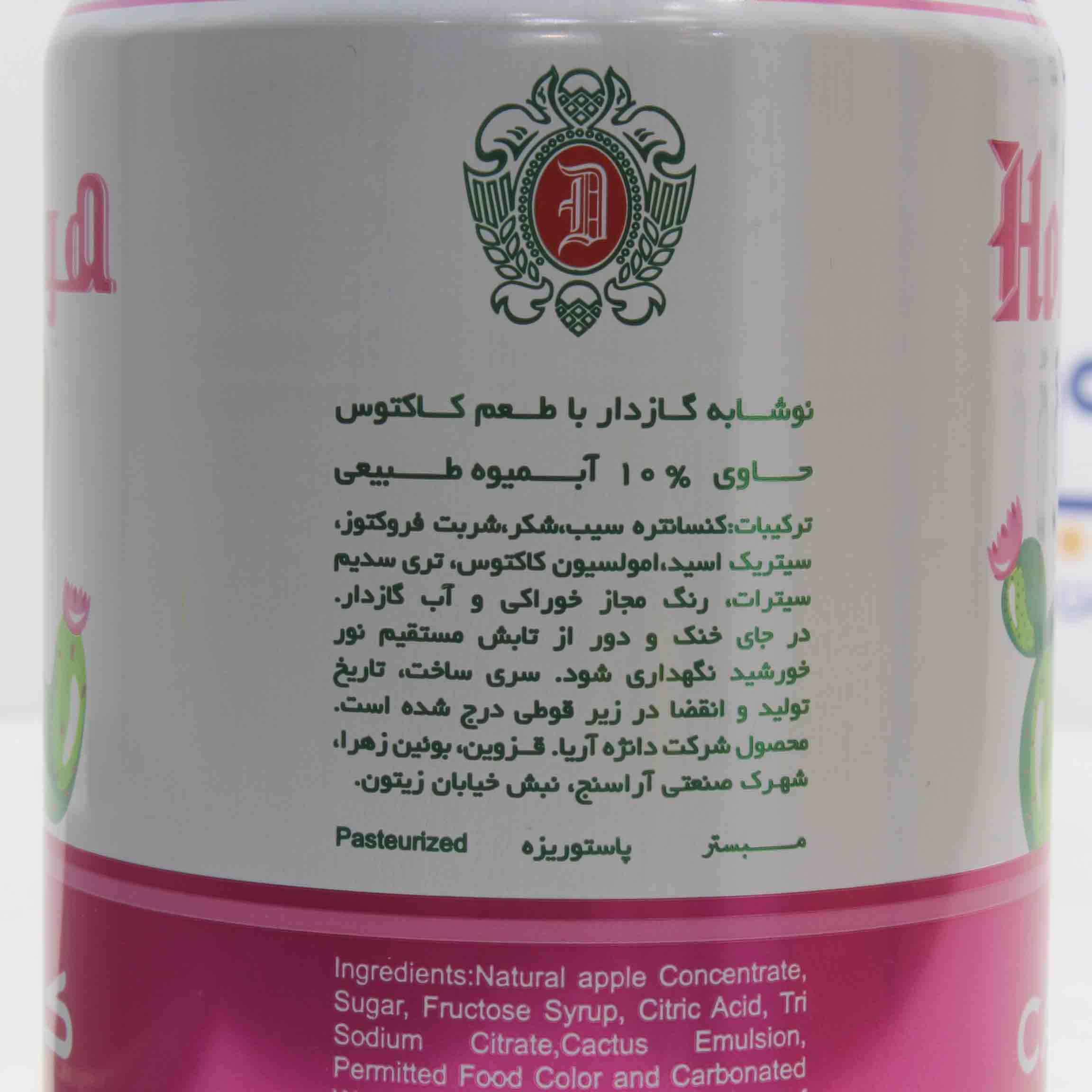 کنسانتره طبیعی سیب ـ شکر ـ شربت فروکتوز ـ سیتریک اسید ـ امولسیون کاکتوس ـ تری سدیم سیترات ـ رنگ مجاز خوراکی و آب گازدار.