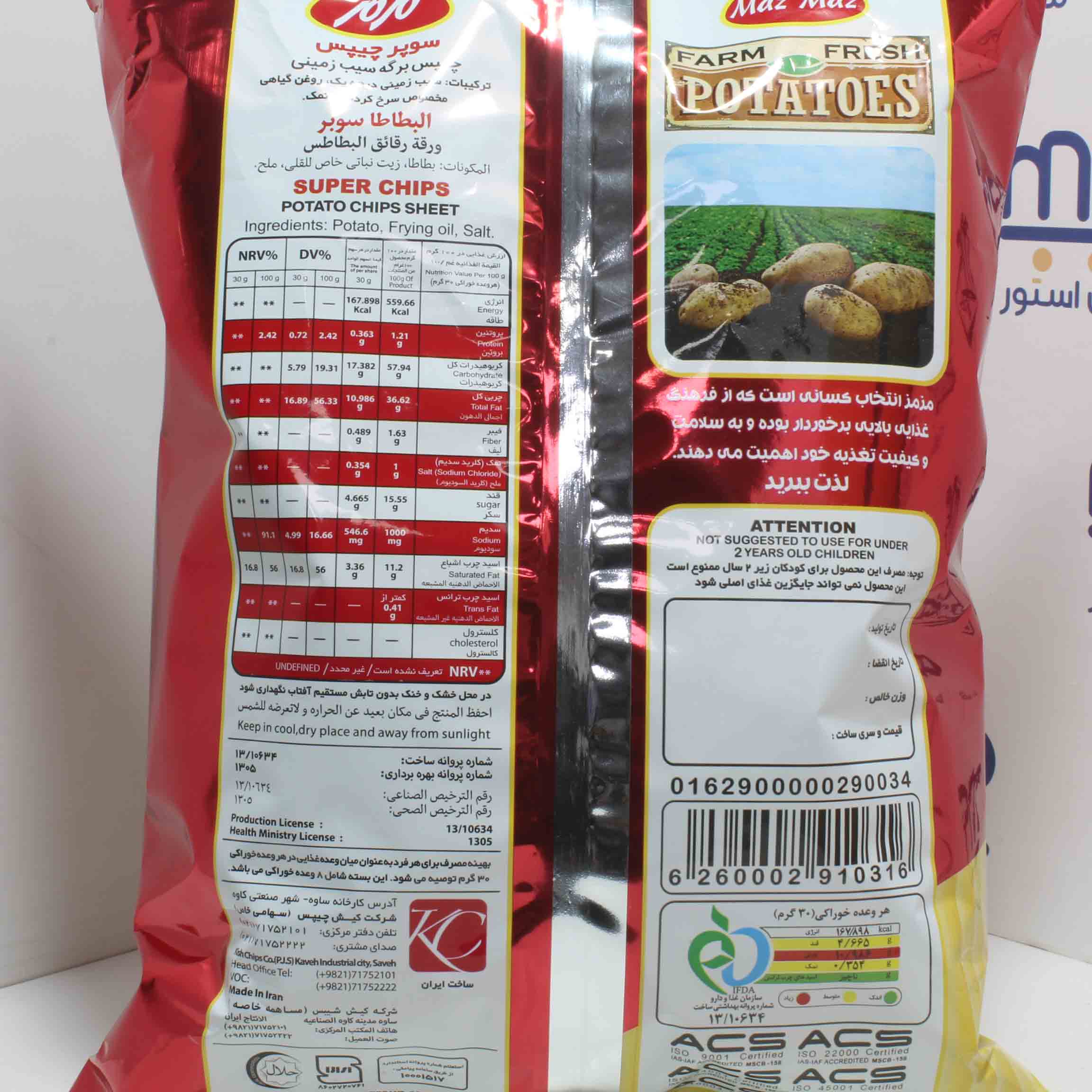 قیمت خرید و مشخصات چیپس برگه سیب زمینی سوپر چیپس مزمز|چیپس برگه سیب زمینی سوپر چیپس مزمز 240 گرمی