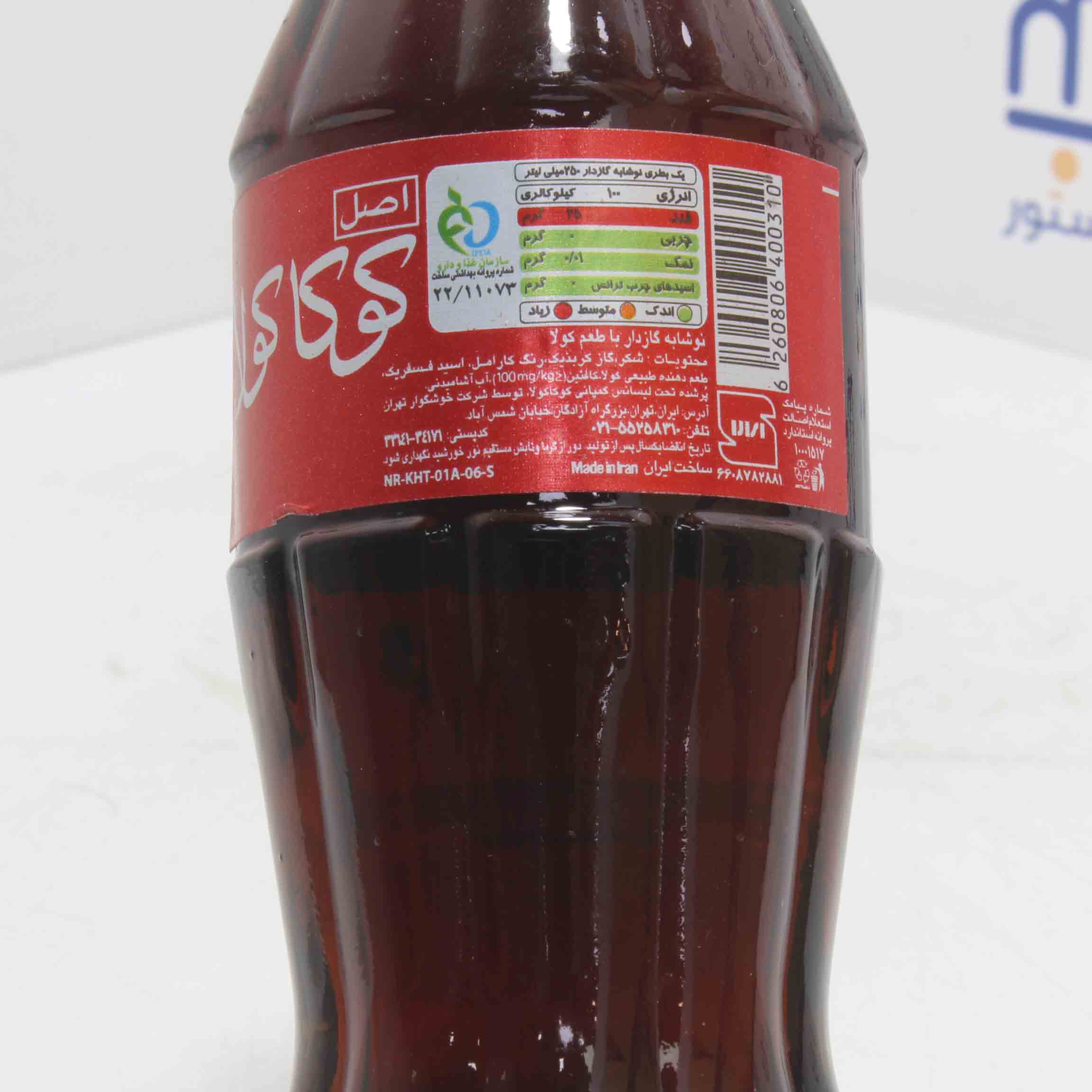 شکر ـ گاز کربنیک ـ رنگ کارامل ـ اسید فسفریک ـ طعم دهنده طبیعی کولا ـ کافئین(ppm100) ـ آب آشامیدنی.