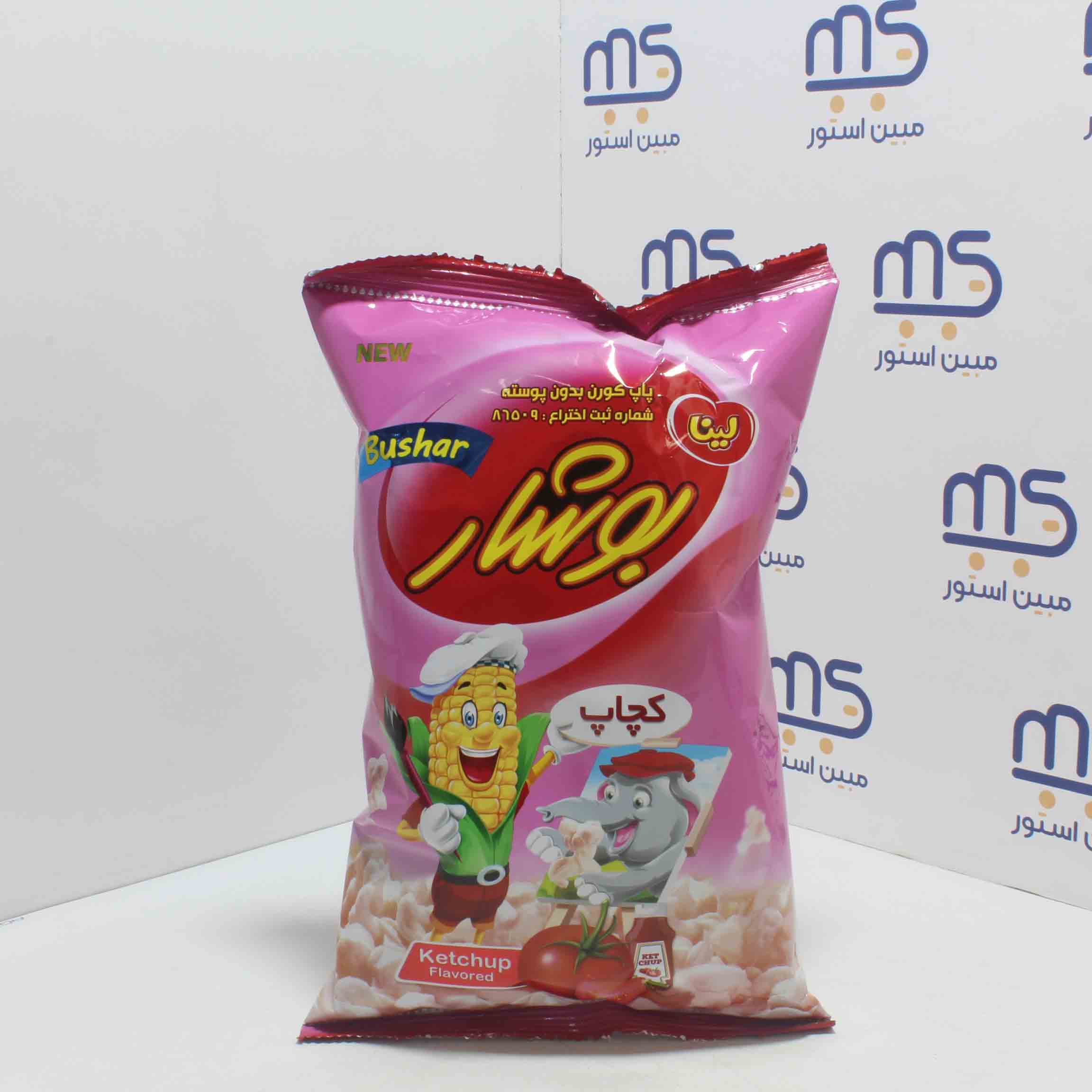 قیمت خرید و مشخصات پاپ کورن بدون پوست با طعم کچاپ بوشار لینا|پاپ کورن بدون پوست با طعم کچاپ بوشار لینا 35 گرمی