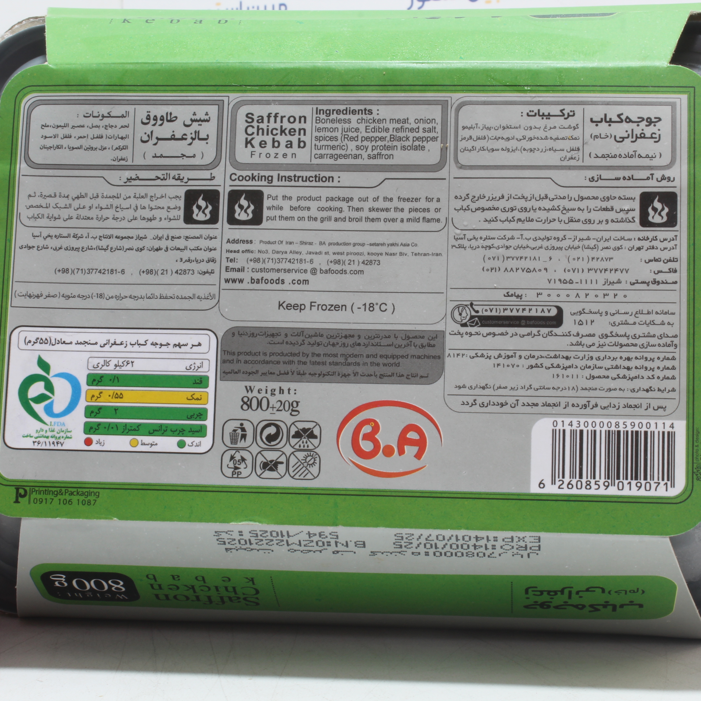 قیمت جوجه کباب زعفرانی خام منجمد ب.آ 800 گرمی