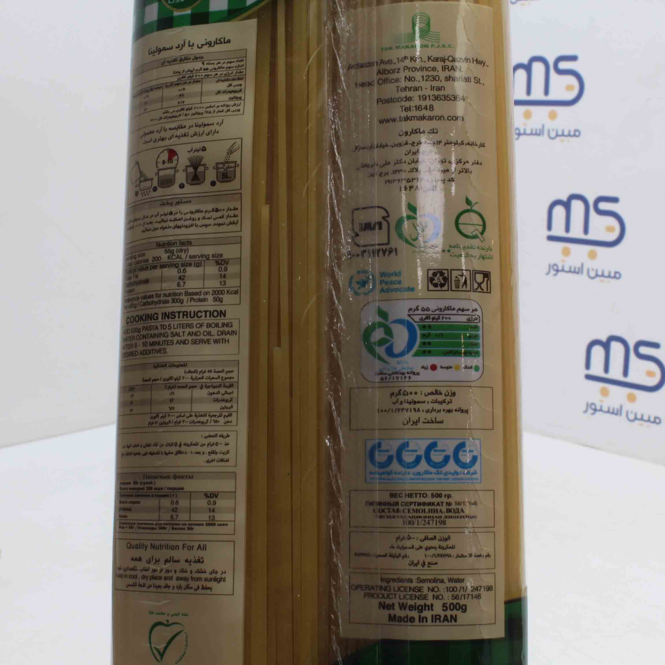 قیمت خرید و مشخصات ماکارونی رشته ای قطر 1/4 تک ماکارون |ماکارونی رشته ای قطر 1/4 تک ماکارون 500 گرمی