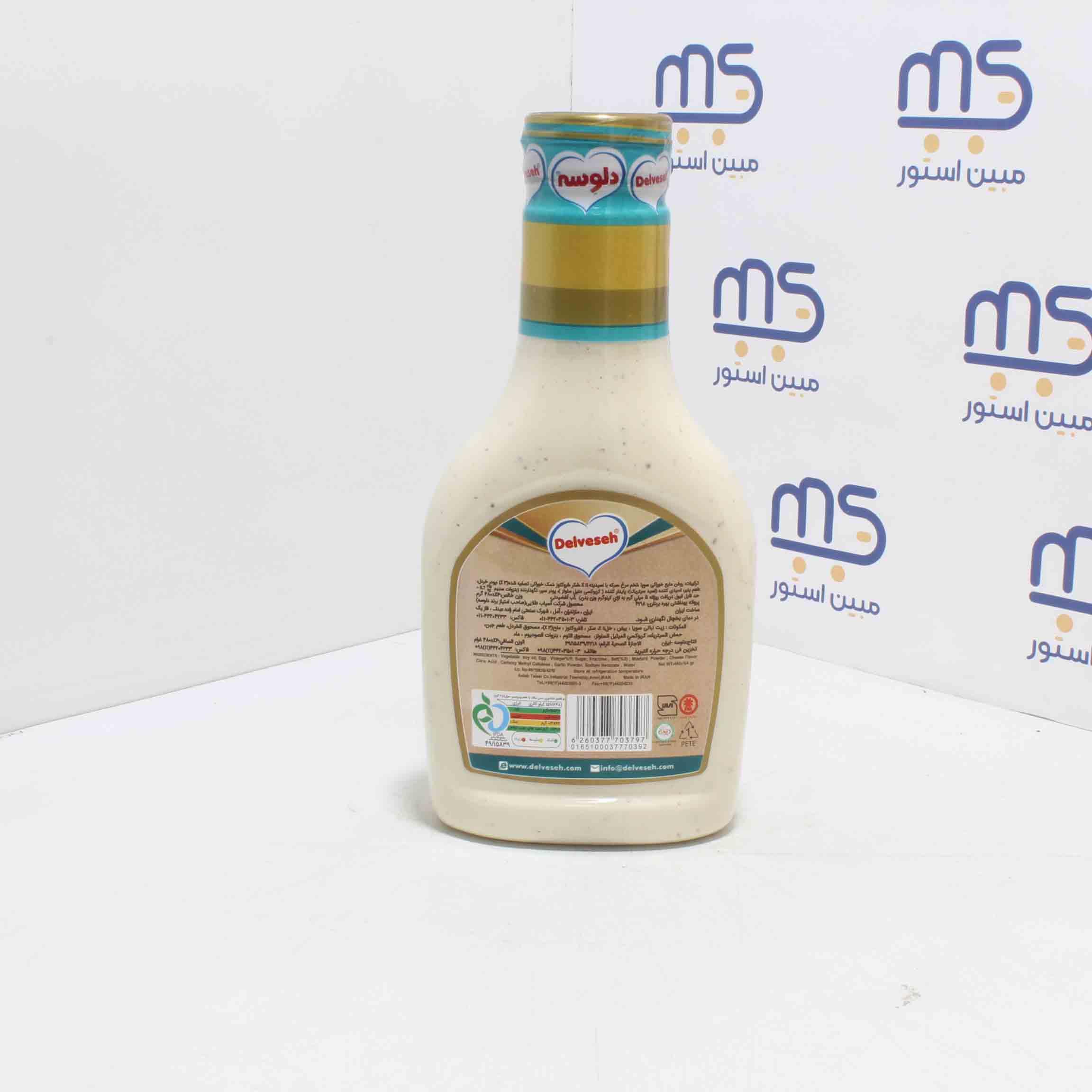 روغن مایع خوراکی سویا، تخم مرغ ، سرکه با اسیدیته 11 % ، شکر ، فروکتوز ، نمک خوراکی تصفیه شده (3% ) ، پودر خردل ، طعم پنیر ، اسیدی کننده ( اسید سیتریک ) ، پایدار کننده ( کربوکسی متیل سلولز ) ، پودر سیر ، نگهدارنده ( بنزوات سدیم ) ، آب آشامیدنی