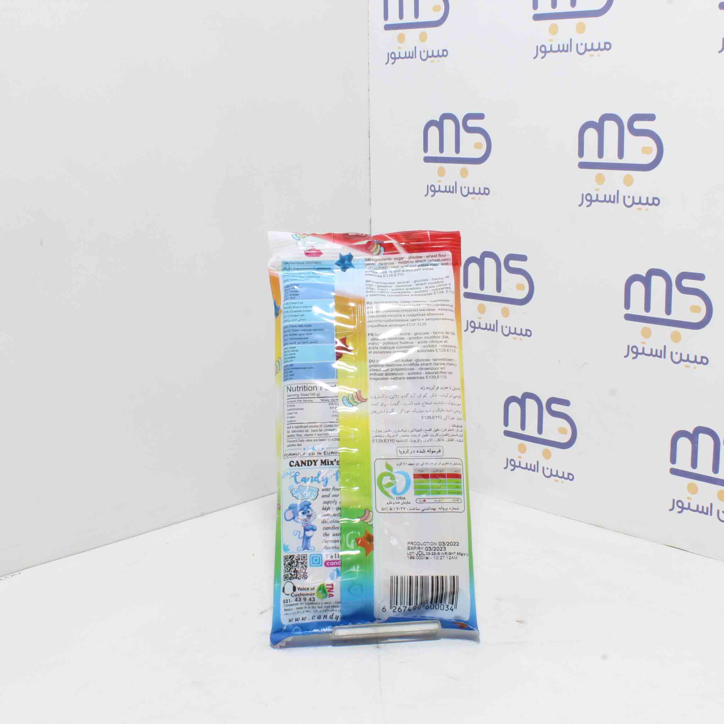 گلوکز ، آرد گندم ، شکر ، ژلاتین ، دکستروز ، نشاسته گندم ، اسید سیتریک و اسید مالیک خوراکی ، سوربیتول ، رنگ و اسانس های مجاز خوراکی