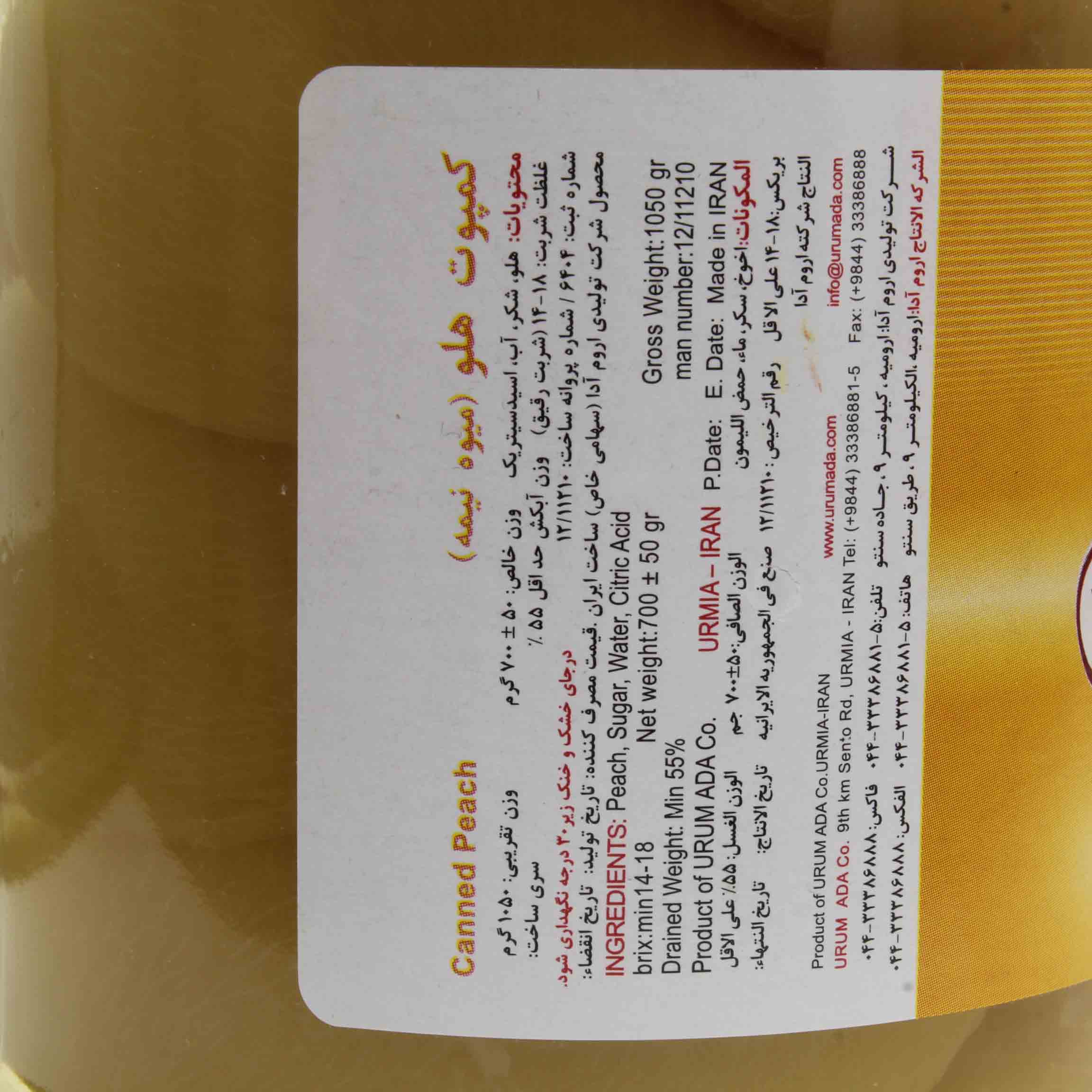 قیمت خرید و مشخصات کمپوت هلو اروم آدا |کمپوت هلو اروم آدا 700 گرمی