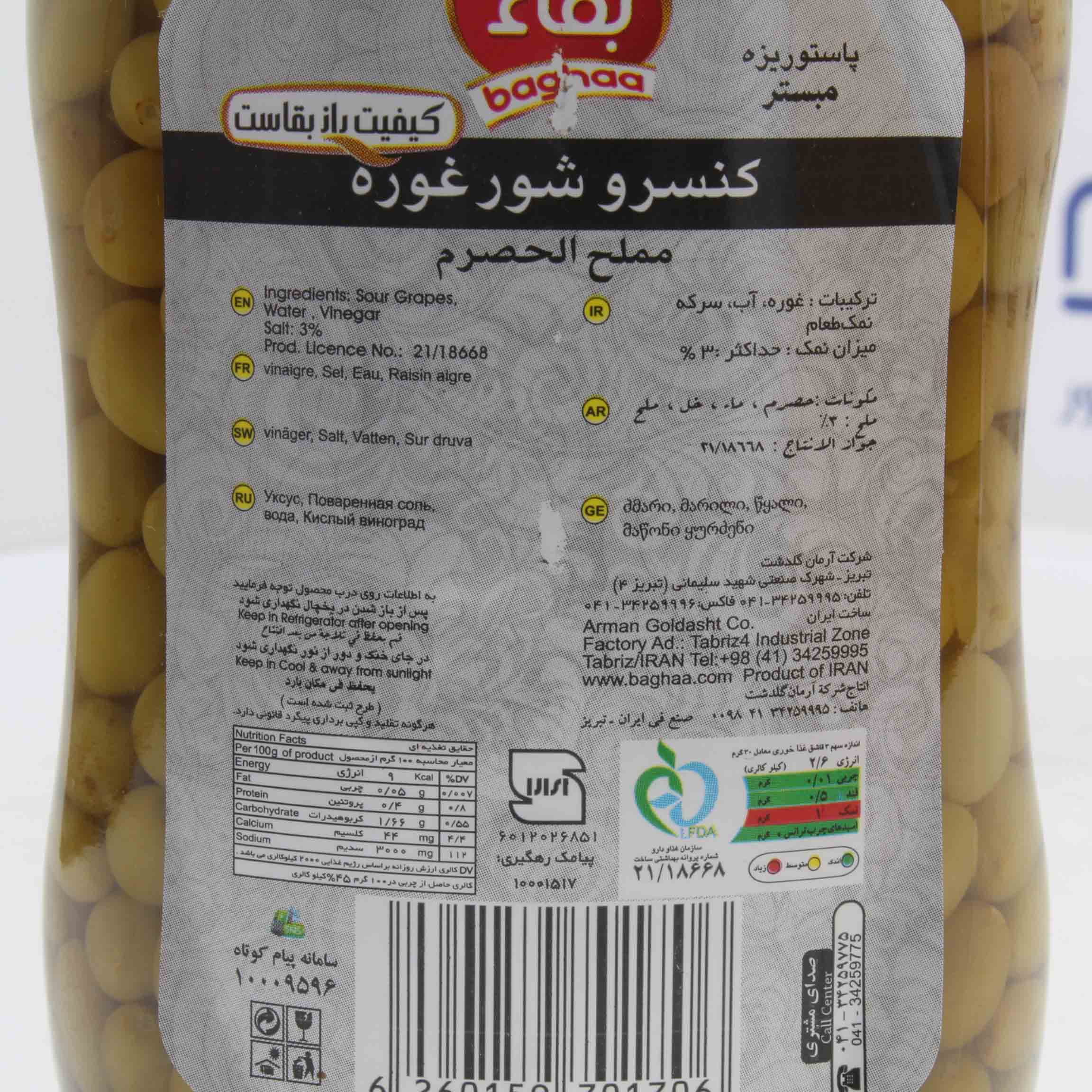 قیمت خرید و مشخصات کنسرو شور غوره بقاء |کنسرو شور غوره بقاء 600 گرمی