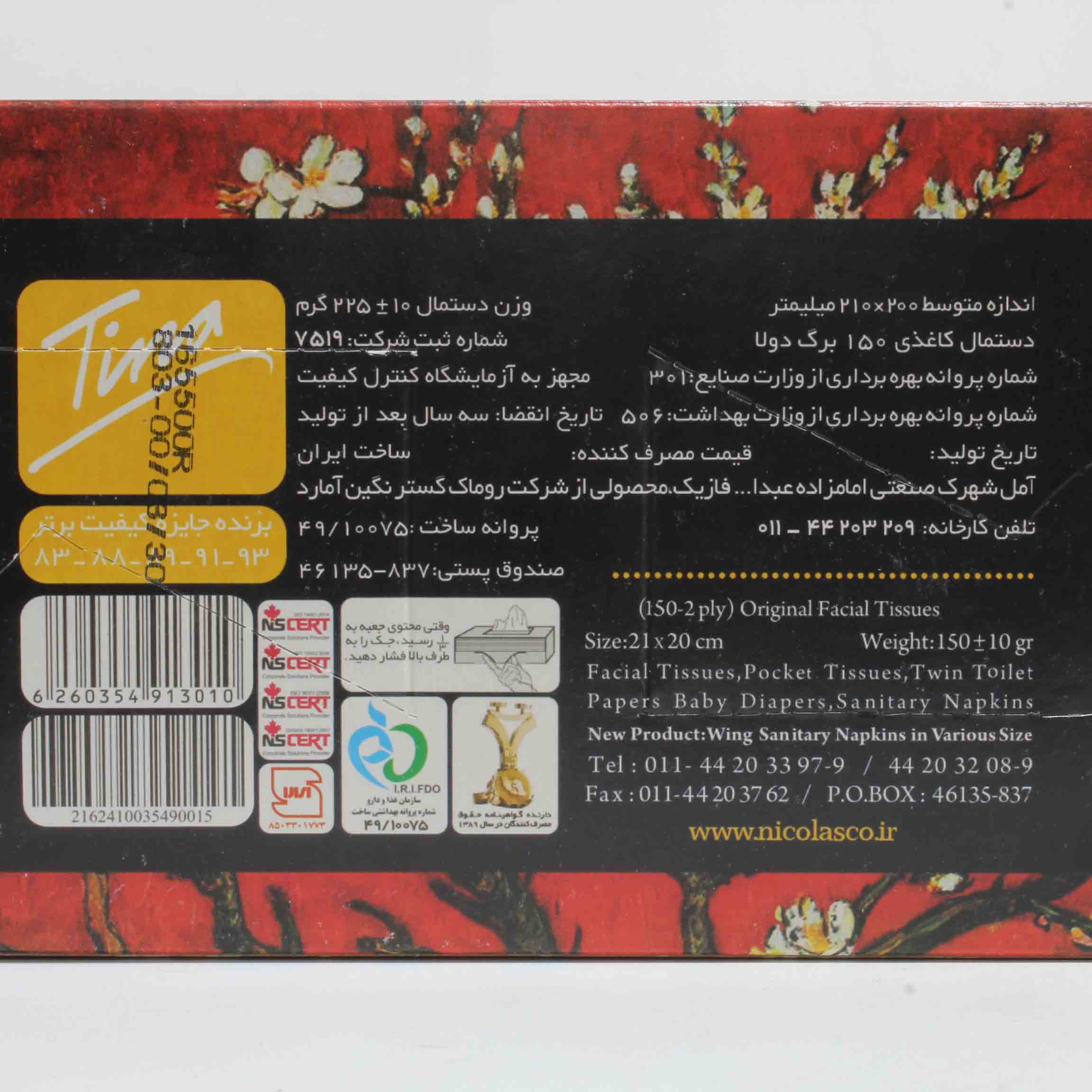 قیمت خرید و مشخصات دستمال کاغذی تینا |دستمال کاغذی تینا 150 برگ 2 لایه
