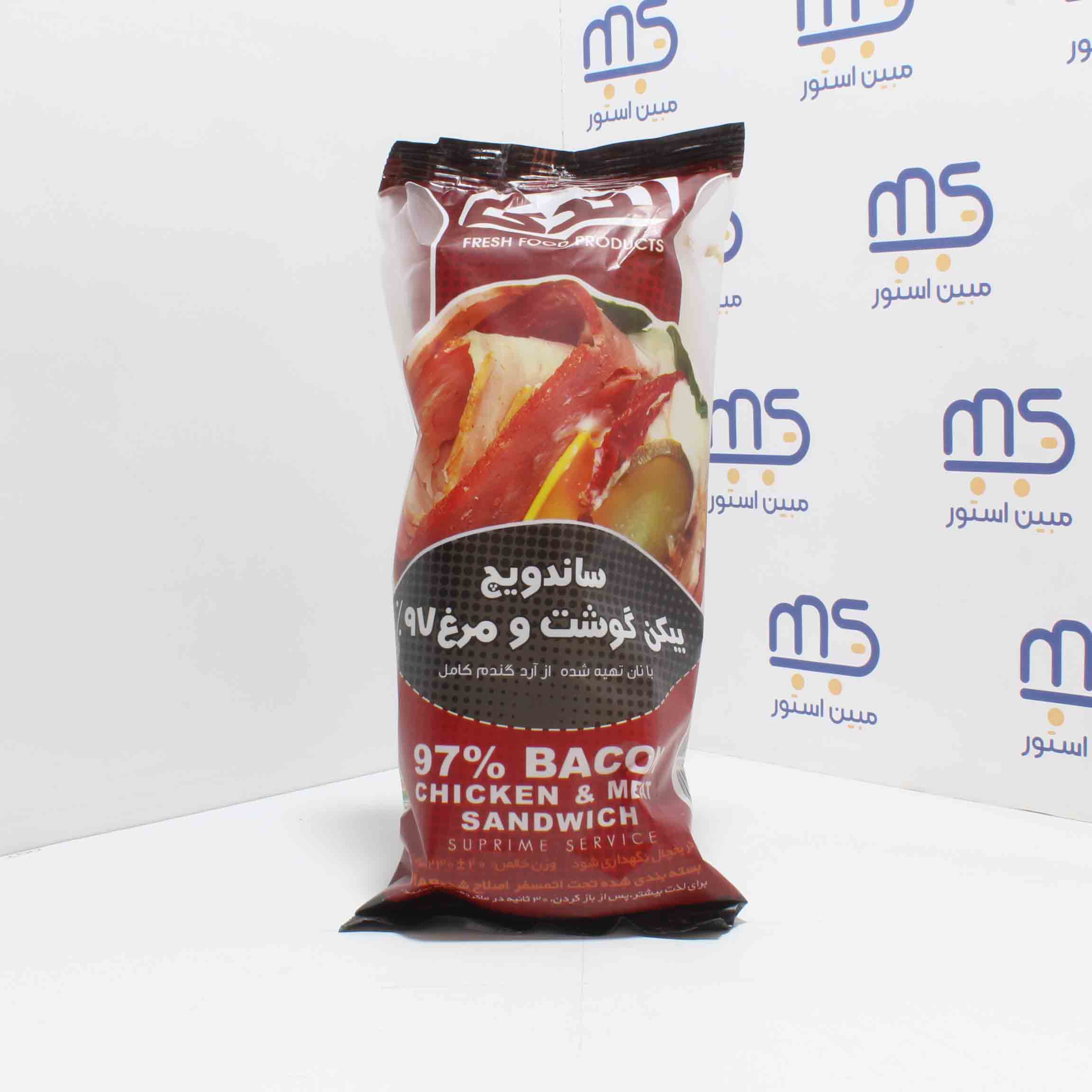 قیمت ساندویچ بیکن گوشت و مرغ 97% با نان تهیه شده از آرد گندم کامل لندی 230 گرمی