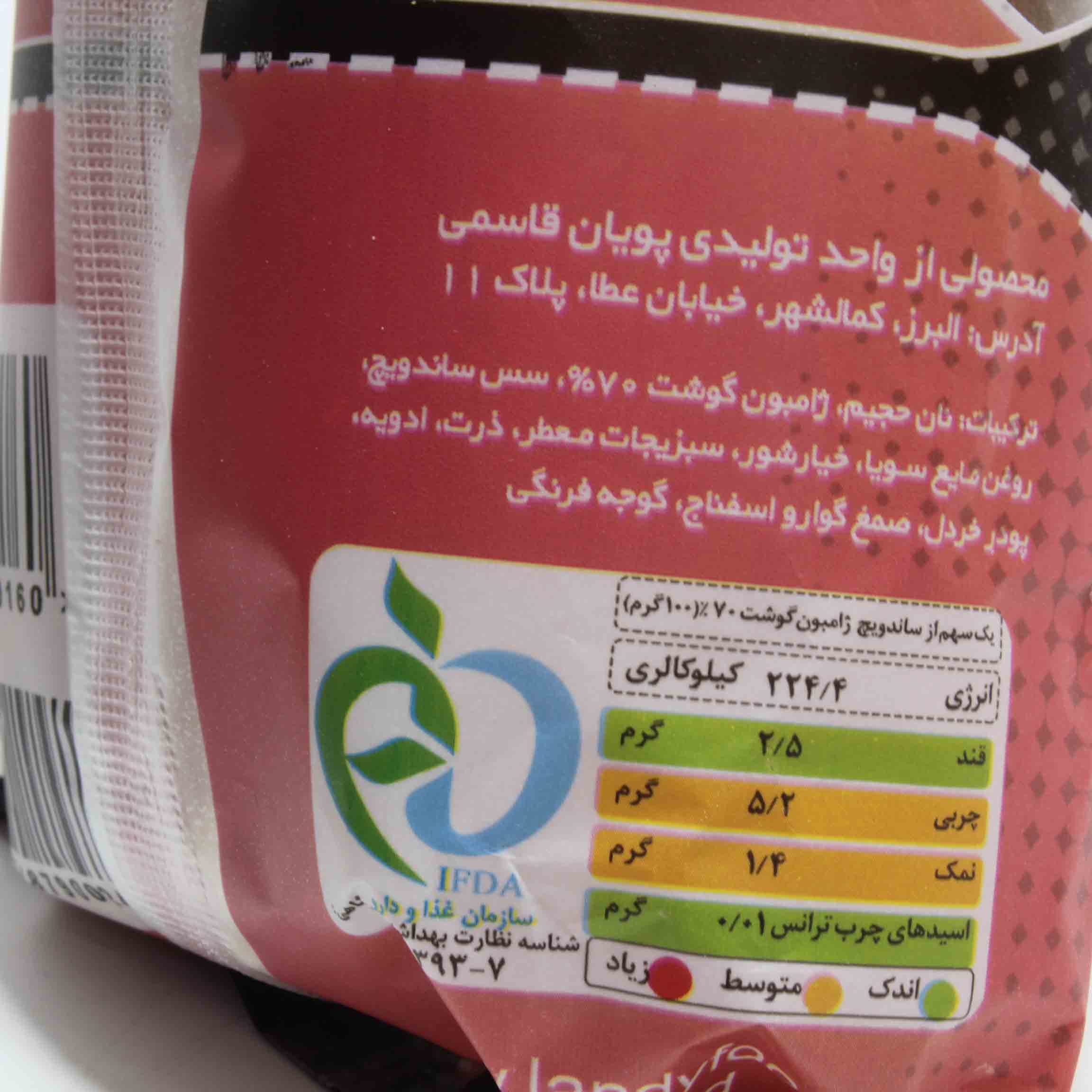 قیمت ساندویچ ژامبون گوشت 70% با نان تهیه شده از آرد گندم کامل لندی 230 گرمی