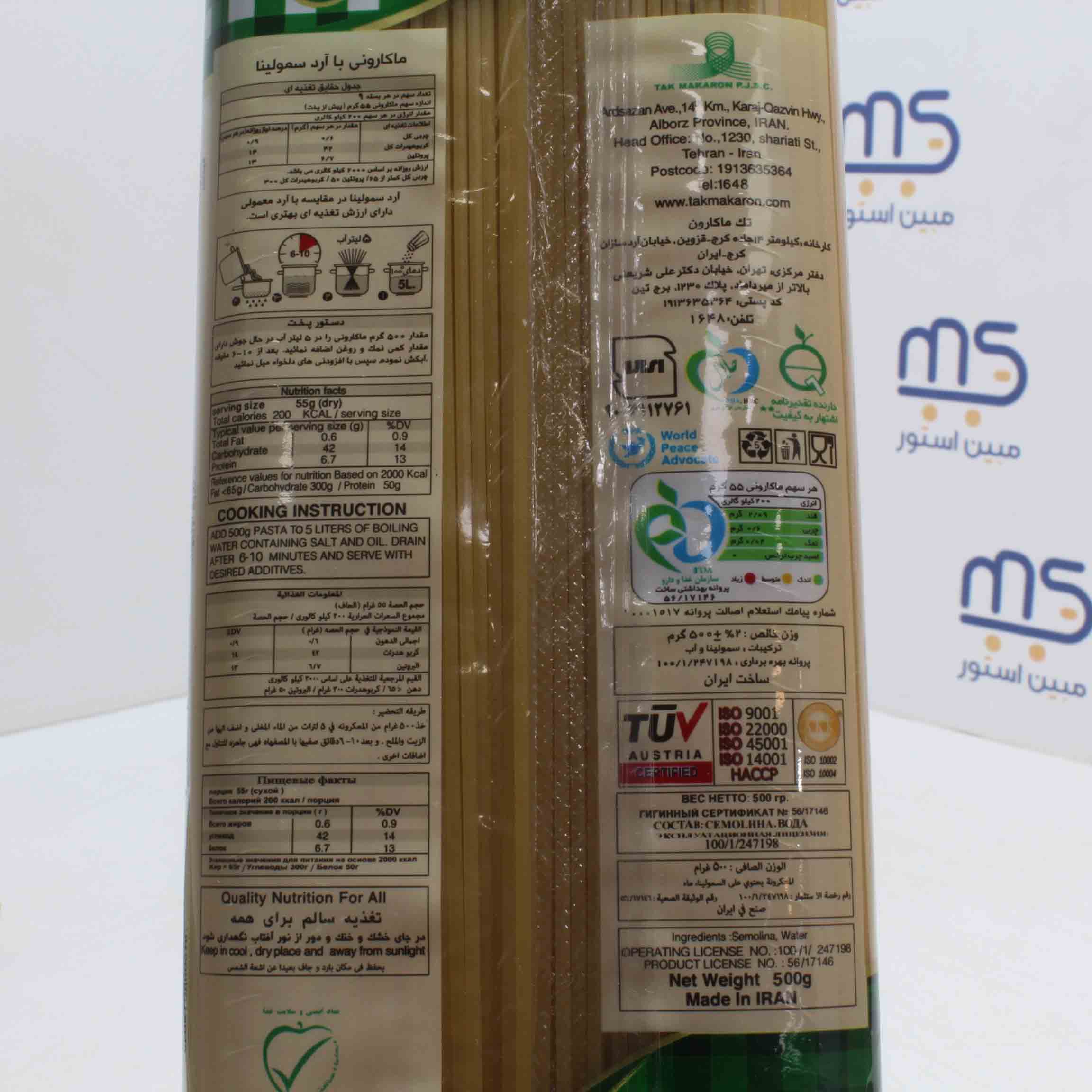 قیمت خرید و مشخصات ماکارونی رشته ای قطر 1/7 تک ماکارون |ماکارونی رشته ای قطر 1/7 تک ماکارون 500 گرمی