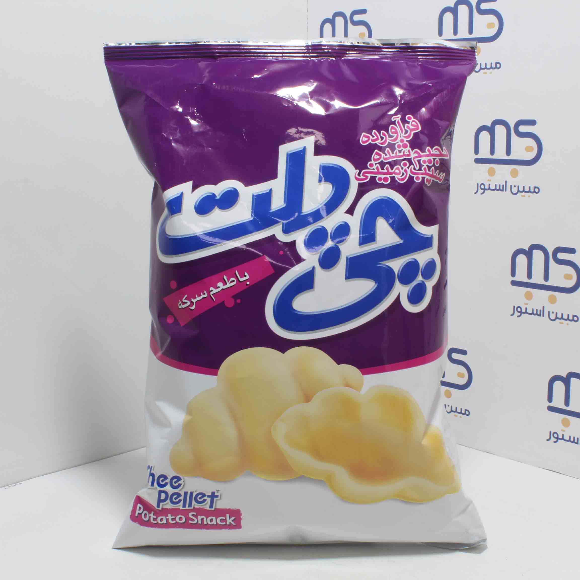 هایپر مارکت تنقلات و خشکبار چیپس فرآورده حجیم شده و سرخ شده بر پایه سیب زمینی سرکه نمکی چی پلت 100 گرمی