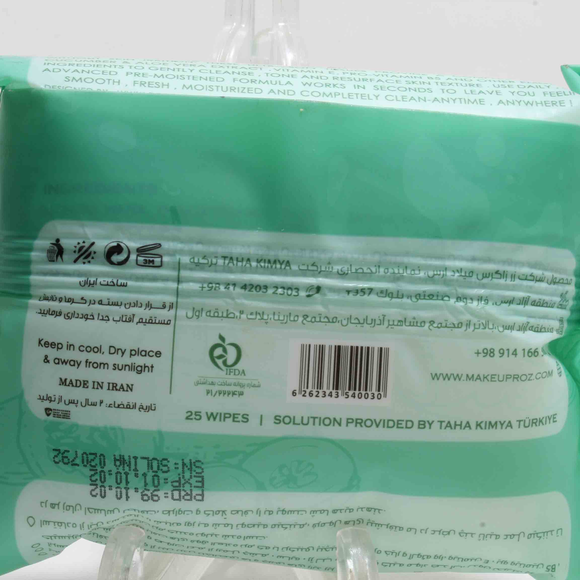 دستمال مرطوب آرايش پاک کن چشم و صورت با عصاره خيار و آلوئه ورا ميکاپ رز 25 عددي